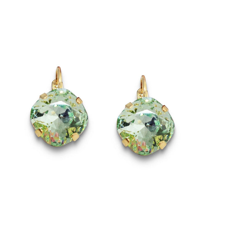 Swarovski Kristall 12 mm quadratische Ohrringe mit ausgefallenem Stein, grüner Chrysolith, vergoldet