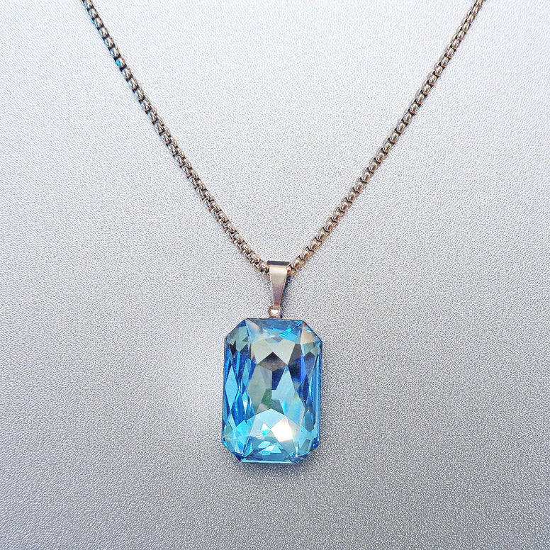 Collier pendentif en pierre rectangulaire fantaisie grand cristal Swarovski 27X18,5 mm aigue-marine, chaîne en acier inoxydable