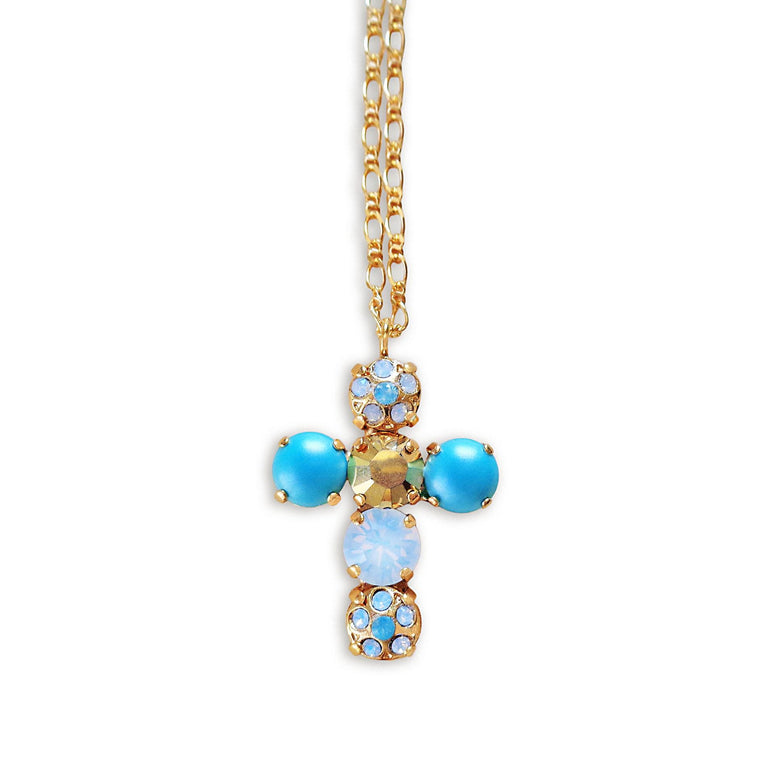 Collier pendentif croix en cristal Swarovski, opale blanche et turquoise, plaqué or fin 24 carats