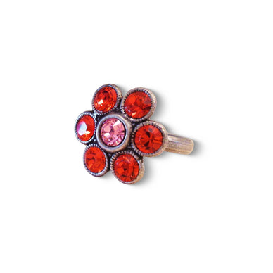Floral design ring made with Austrian crystal.crystal type: 4,5mm roundcolour: hyakinth,roseband size:17mm diameter