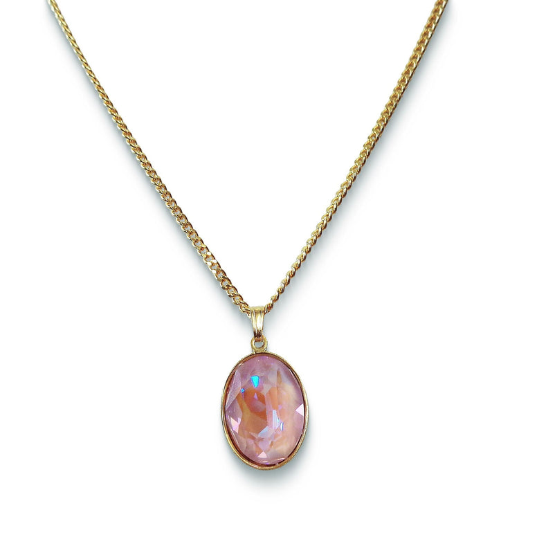 Crystal pendant made with Austrian crystal.crystal type:18X13mm oval colour: dusty pinkChain length:46cmMetal: fine gold plated