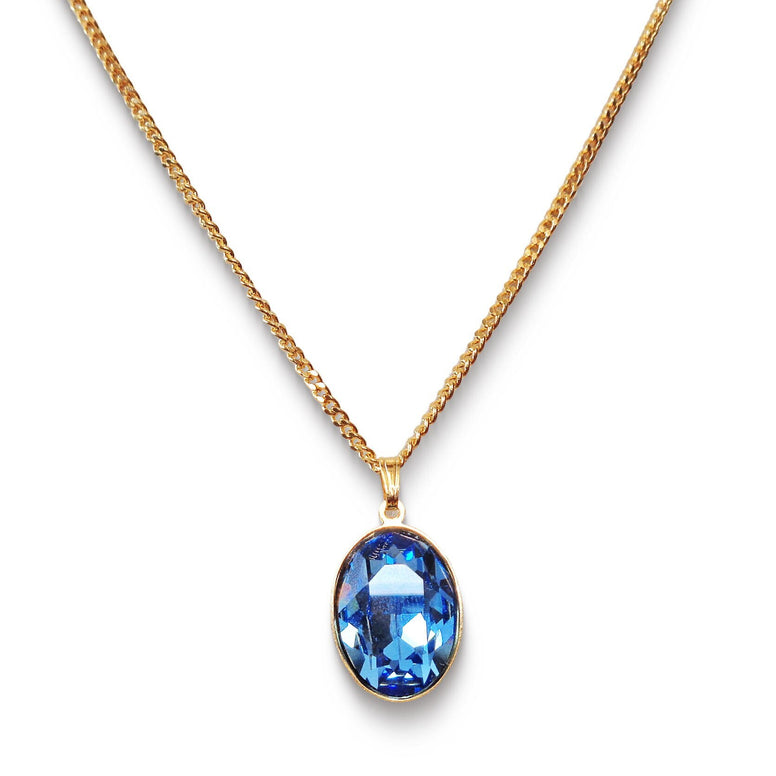 Crystal pendant made with Austrian crystal.crystal type:18X13mm oval colour: ice blueChain length:46cmMetal: fine gold plated