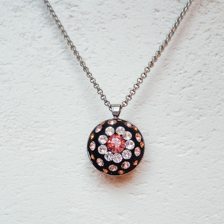 Round pendant necklace made with Austrian crystal and crystal clay.