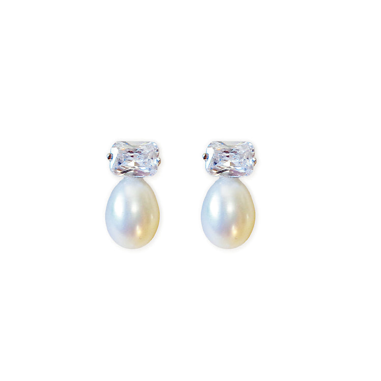 Fresh water pearl white stud earring, cubic zirconia sterling silver
