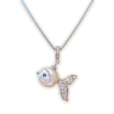Freshwater pearl AAAA white/aqua pendant necklace,stainless steel