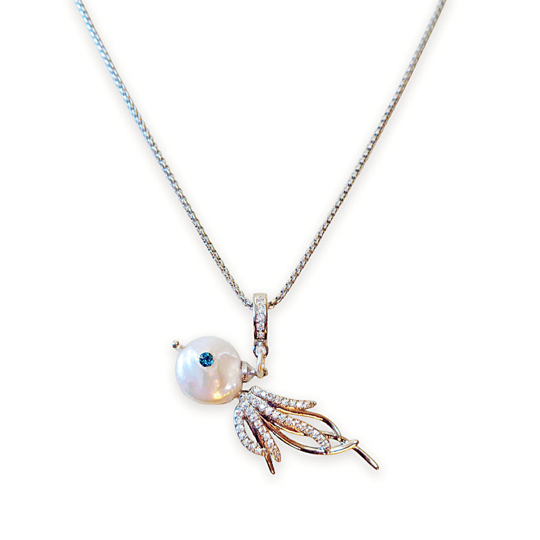 Freshwater pearl AAAA white pendant necklace,stainless steel