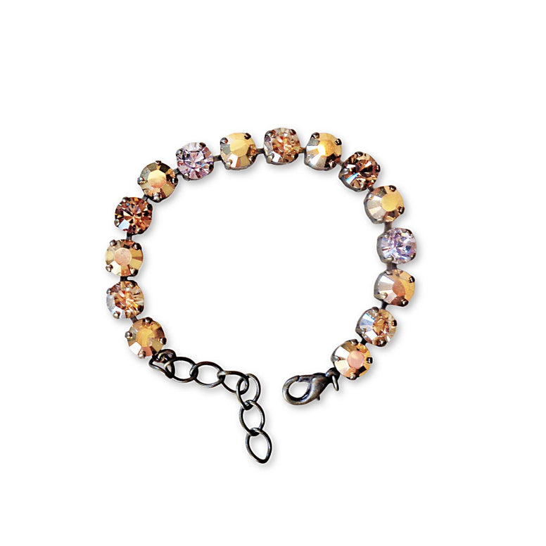 Tennis bracelet made with Austrian crystalcrystal type:8mm roundMetal: antique brass platedColour: aurum gold, and golden brownSize: 17cm+3cm