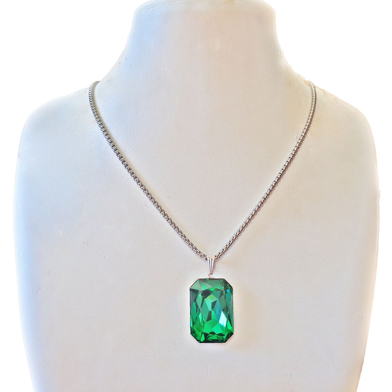 Crystal large rectangular pendant necklace majestic green,stainless steel