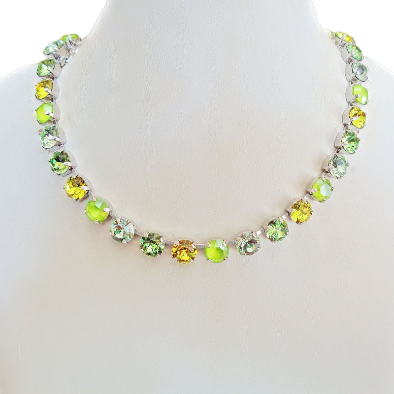 ITEM TYPE: necklace/chokerMATERIAL/GEMSTONE: Austrian crystalCRYSTAL TYPE: 8mm roundCOLOUR:citrus green,limeMETAL: rhodium silver plated