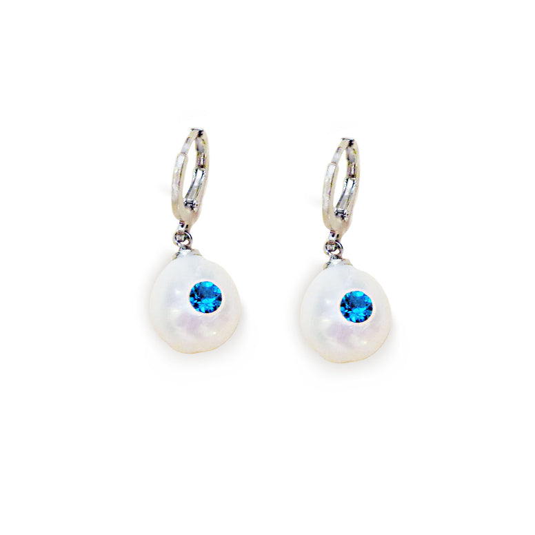 Drop earrings made with natural cultured fresh water pearls and Austrian crystal