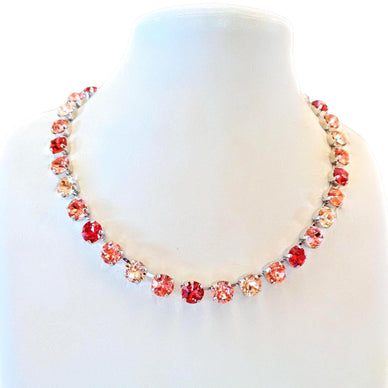 CRYSTAL TYPE: 8mm roundNECKLACE SIZE: 35cm+10cmCOLOUR: peach and redMETAL: rhodium silver plated