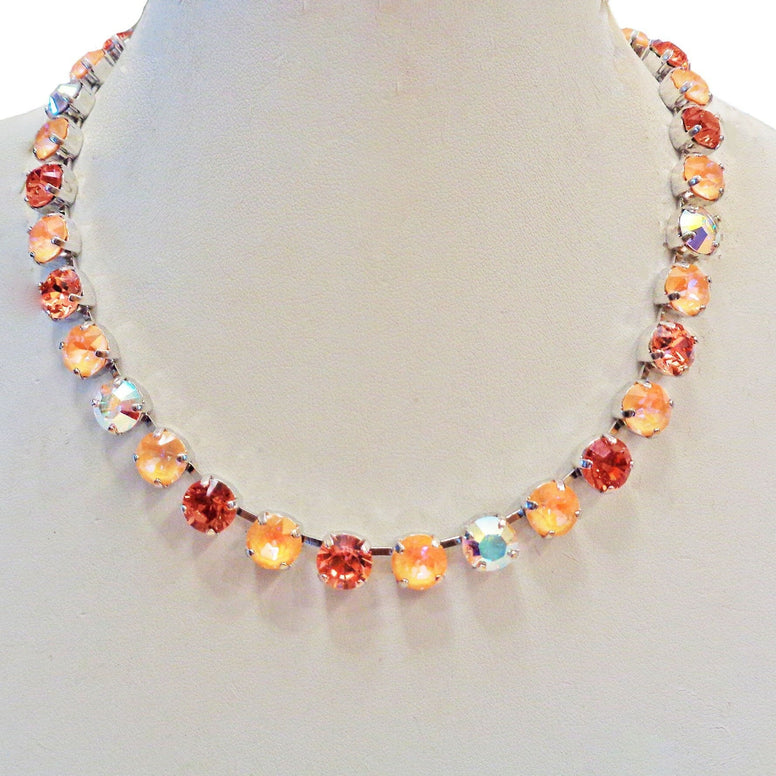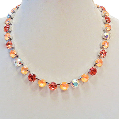 PEACH SORBET crystal tennis necklace, crystal peach,rose peach ,rhodium silver