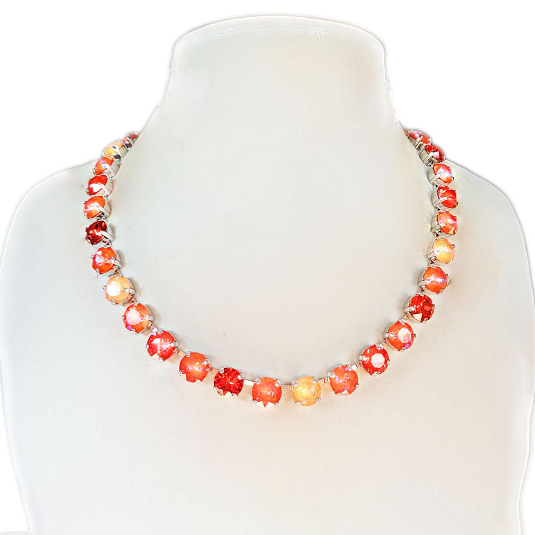 CRYSTAL TYPE: 8mm roundNECKLACE SIZE: 35cm+10cmCOLOUR: orange glow deliteMETAL: rhodium silver plated