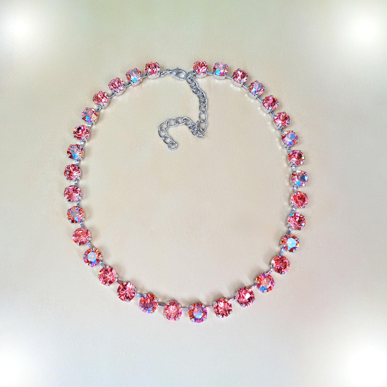 CRYSTAL TYPE: 8mm roundNECKLACE SIZE: 35cm+10cmCOLOUR: rose peach,rose peach shimmerMETAL: rhodium silver plated