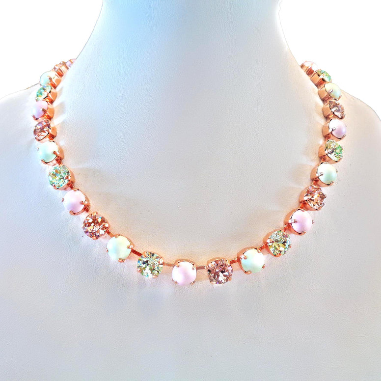 PURE INNOCENCE crystal and pearl necklace,pastel green ,pink,rose gold
