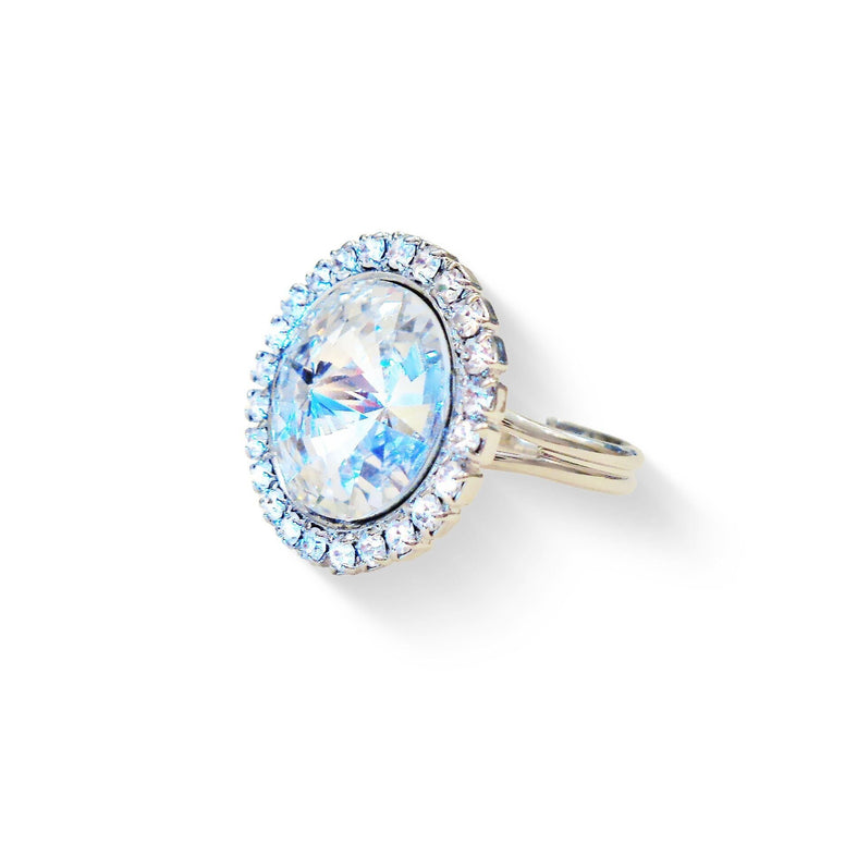 Colour: clear crystalMetal : rhodium silverCrystal type: 14mm rivoliBand diameter:22mmAdjustable size