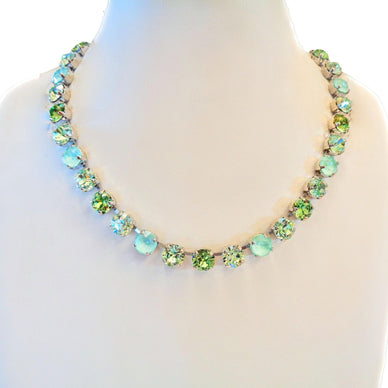 ITEM TYPE: necklace/chokerMATERIAL/GEMSTONE: Austrian crystalCRYSTAL TYPE: 8mm roundCOLOUR: pastel green METAL: rhodium silver plated