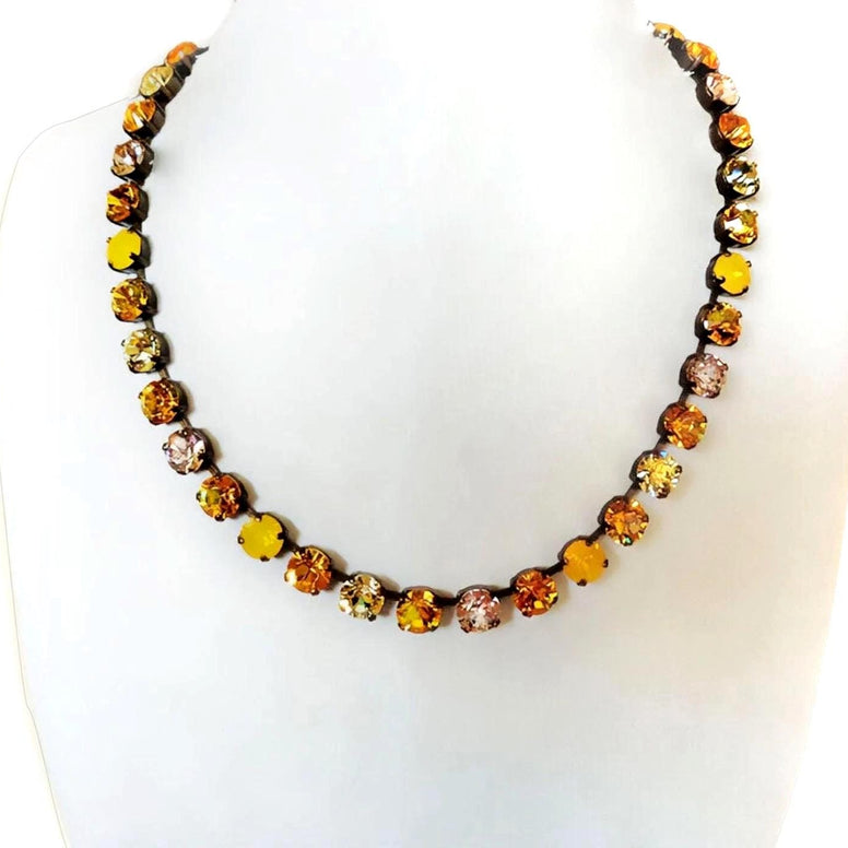 SUNFLOWER FIELD Austrian crystal necklace crystal vivid yellows ,antique brass