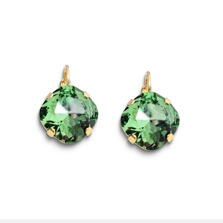 Crystal square drop earrings erinite green,goldplated