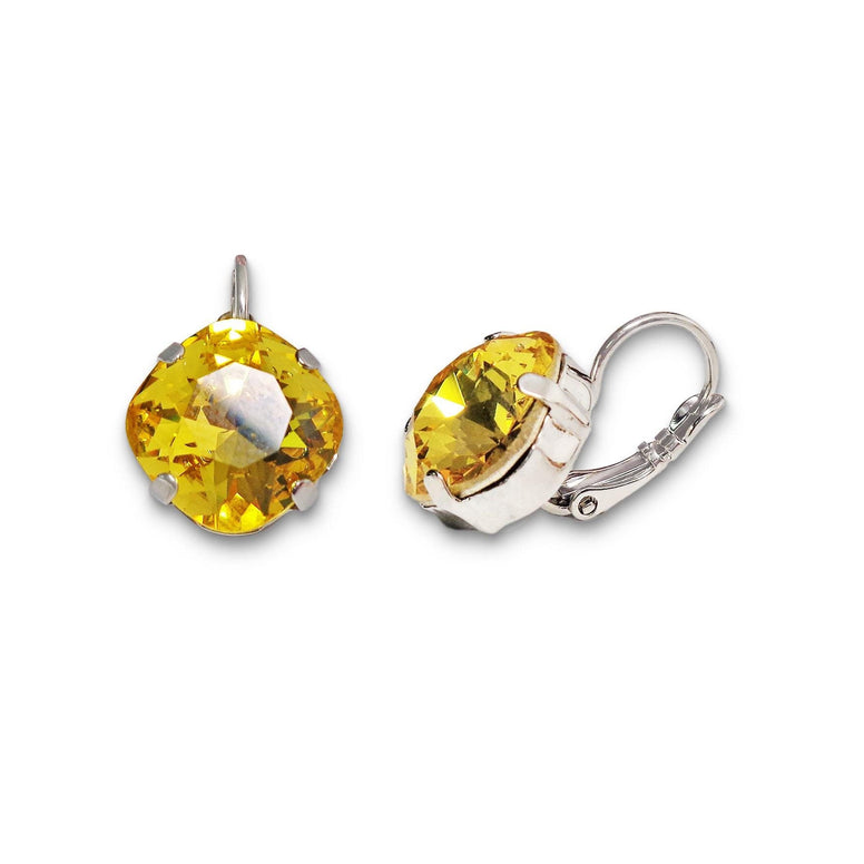 Crystal drop earrings made with Austrian crystalcrystal type: 12mm squarestyle: dropcolour: light topazlength: 23mmmetal: rhodium silver plated