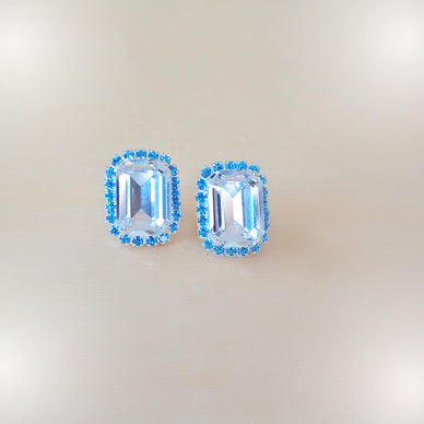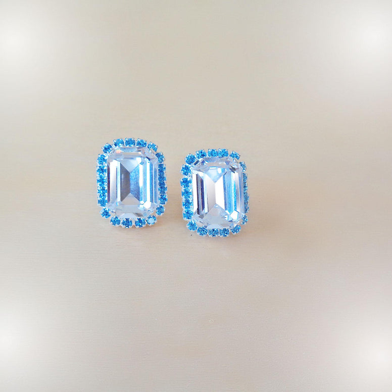 Colour: clear crystal,aquamarineMetal setting: bright silver platedCrystal type: 14x10 rectangle Length: 18mmWidth: 15mm