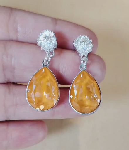 metal: silver platedstyle: stud and dropcrystal type:pear 18X13mmcolour: mangodrop length:22mmlength: 32mm