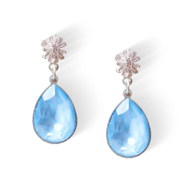 metal: silver platedstyle: stud and dropcrystal type:pear 18X13mmcolour: sky bluedrop length:22mmlength: 32mm