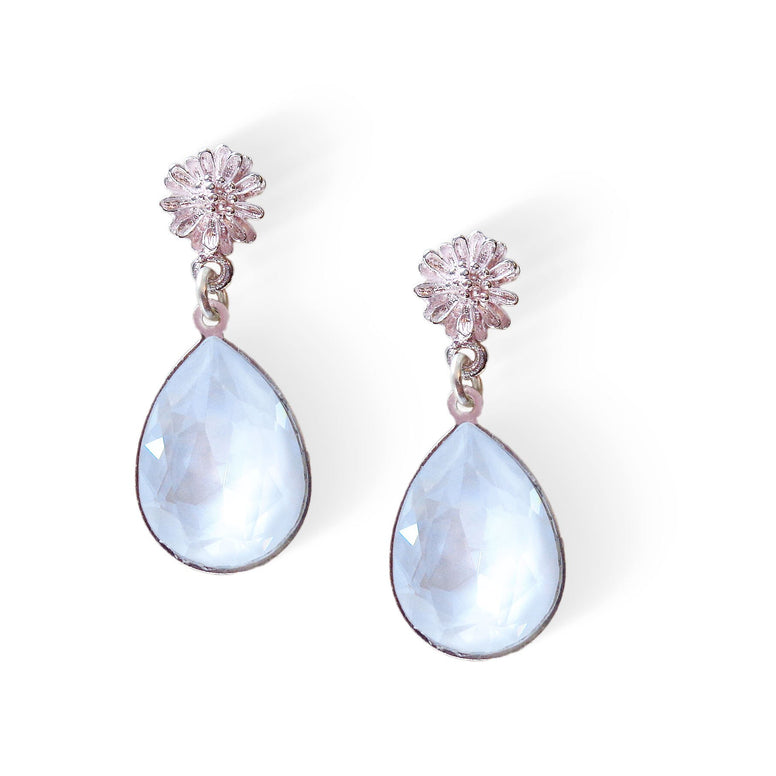 metal: silver platedstyle: stud and dropcrystal type:pear 18X13mmcolour: electric whitedrop length:22mmlength: 32mm