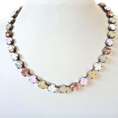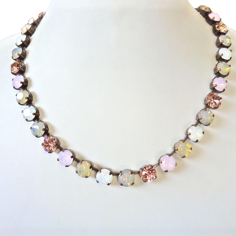 ITEM TYPE: necklace/chokerMATERIAL/GEMSTONE: Austrian crystalCRYSTAL TYPE: 8mm roundCOLOUR: opal grey,opal brown.opal roseMETAL: antique brass plated