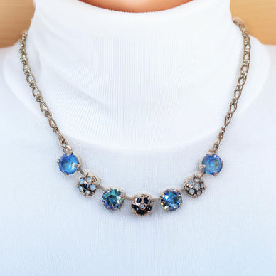 CRYSTAL TYPE: 8mm roundNECKLACE SIZE: 45cm+5cmCOLOUR: blue,ocean delite,light sapphireMETAL: rhodium silver plated