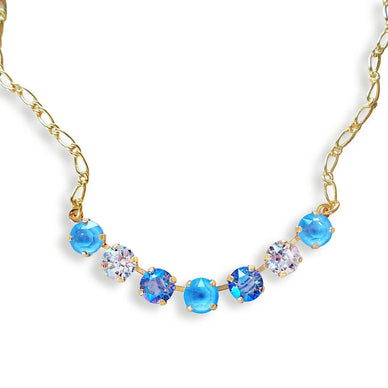 Crystal chain necklace light blue,clear crystal,yellow gold