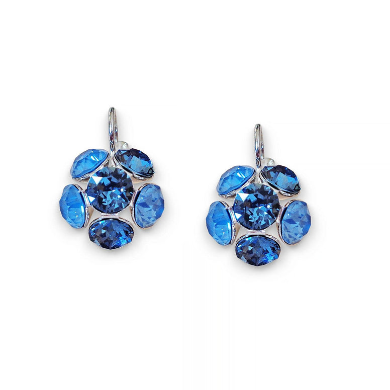 Drop earrings made with Austrian crystalMetal: rhodium silver platedColour: denim blueFull length: 22mmVery elegant and light weight