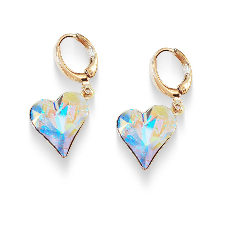 Crystal drop sweetheart earrings, clear crystalAB, gold plated