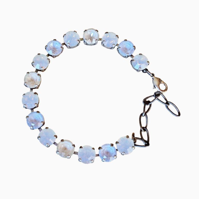 ITEM TYPE: braceletMATERIAL/GEMSTONE: Austrian crystalCRYSTAL TYPE: 8mm roundSIZE: 17+3cmCOLOUR: white opal , whiteMETAL: antique silver plated