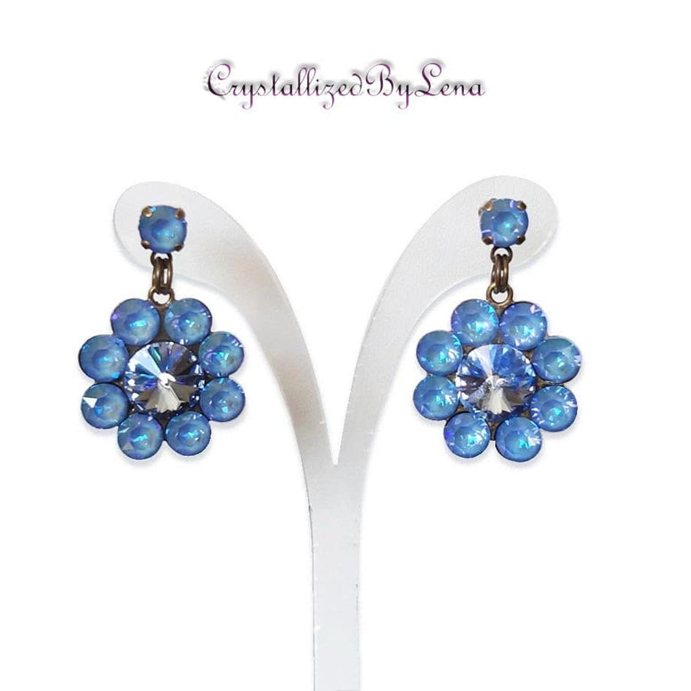 metal: antique brass platedcolour: ocean blue,light sapphireflower drop : 22mmlength: 38mm