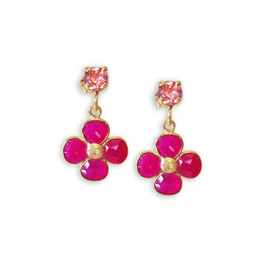 metal: fine gold platedstyle: stud and dropcolour:light rose,rosedrop length:19mmgemstone: Chalcedony colour rose.length: 28mm