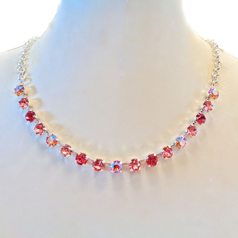 Crystal chain necklace light rose shimmer,pink,bright silver
