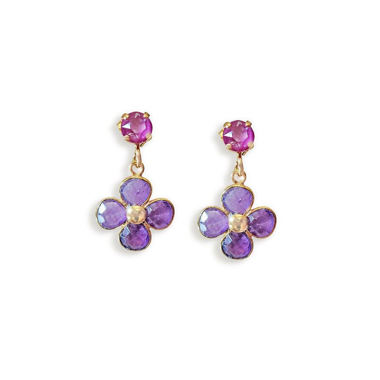 metal: fine gold platedstyle: stud and dropcolour: dark pink,purpledrop length:19mmgemstone: Amethystlength: 28mm