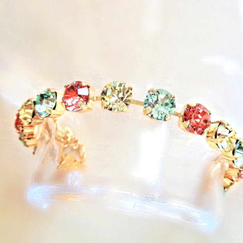 SWEET LAINEY crystal pastel multi colour tennis bracelet ,gold plated