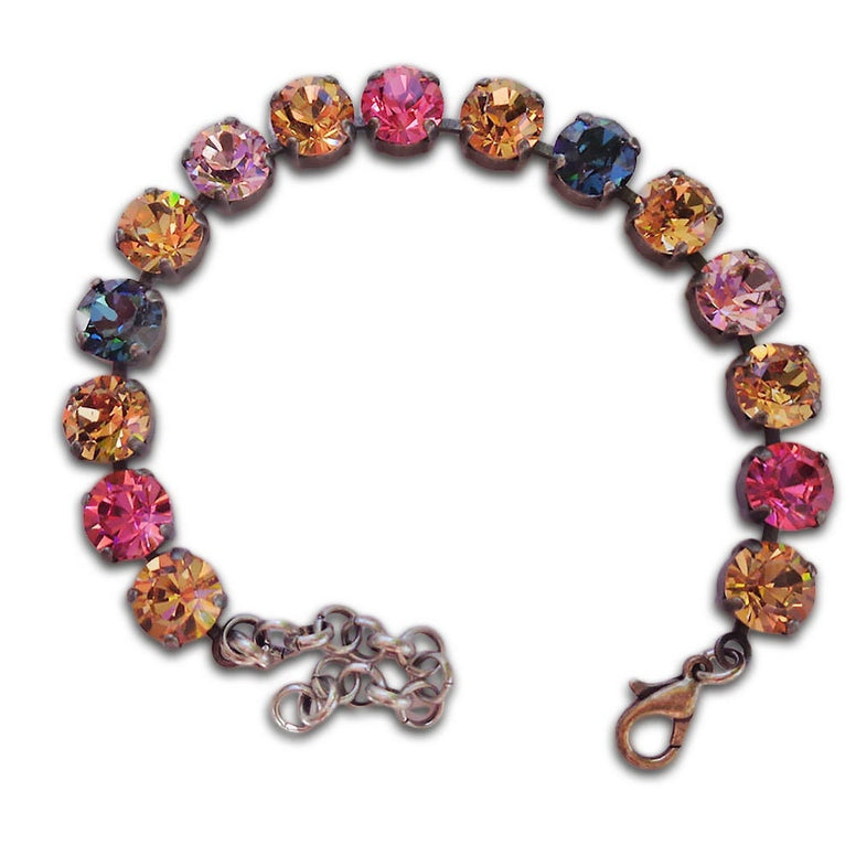 ITEM TYPE: braceletMATERIAL/GEMSTONE: Austrian crystalCRYSTAL TYPE: 8mm roundSIZE: 17+3cmCOLOUR: multicolour as in the photosMETAL: antique silver plated